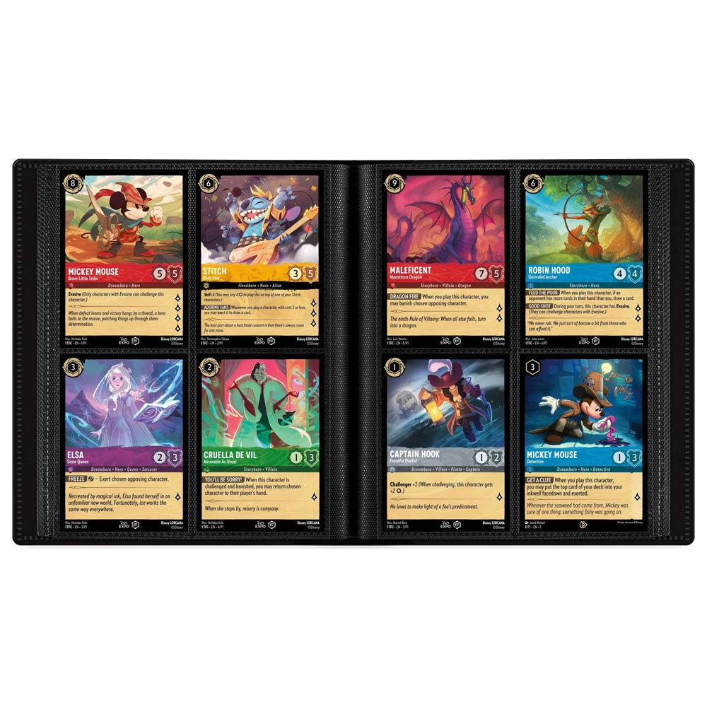 4-pocket PRO-Binder with embossed middle black web material gives cards a classic framed look. Sideloading pocket design to prevent cards from easily falling out. Elastic strap holds the binder shut when not in use. All materials are made from archival-safe, acid-free non-PVC material. Holds 160 cards in Ultra Pro Deck Protector sleeves.