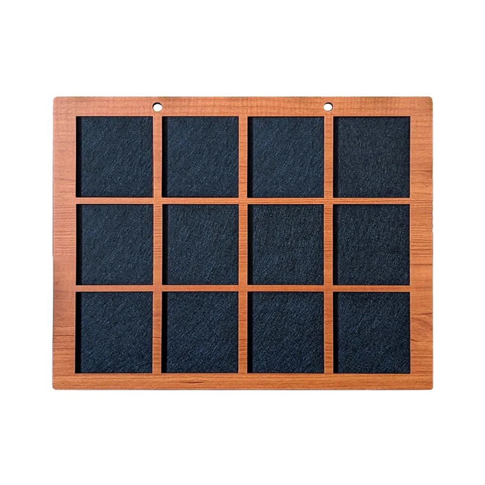 The center layer is 2mm thick stiff black felt. Each slot is 2″ wide and 2″ tall to fit standard pin sizes! Any displays that are 3 or more slots wide will have TWO hanging holes to provide better balance.