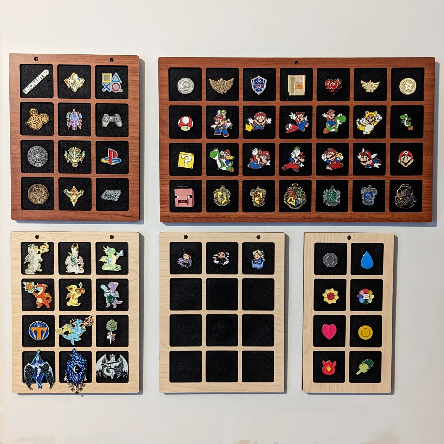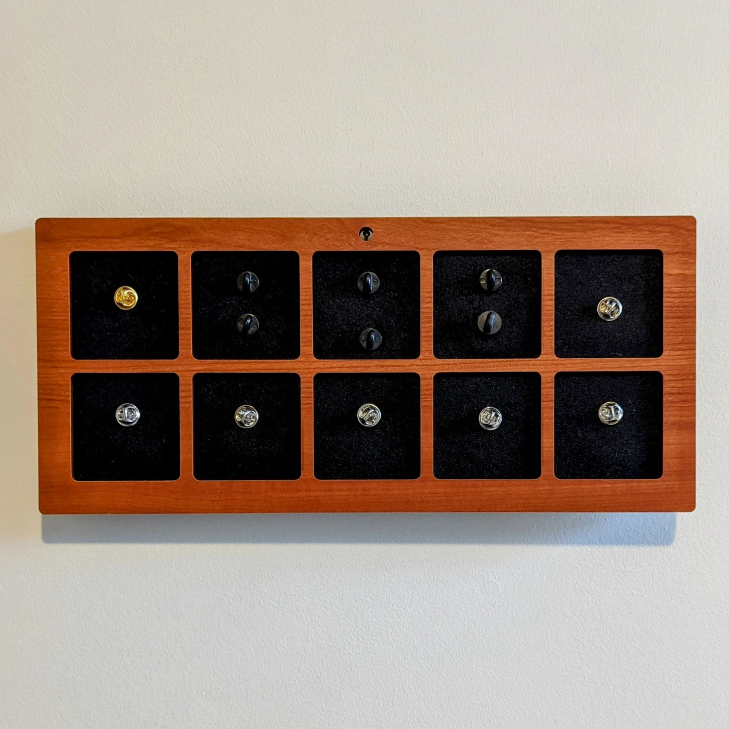 Custom Wood Enamel Pin Display (2″ wide x 2″ high Slots) Fits Standard Pins