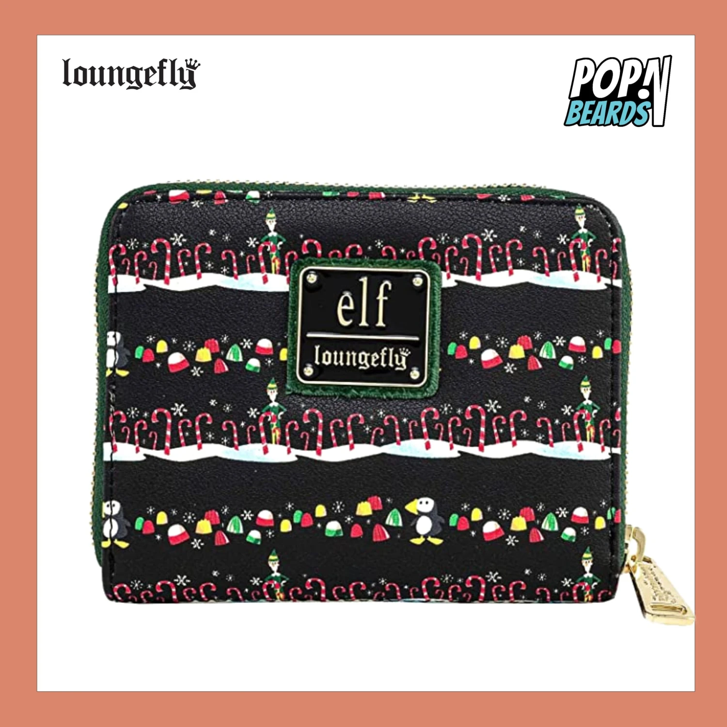 - This vegan (polyurethane) leather zip-around wallet features sturdy gold-colored hardware, and printed details.