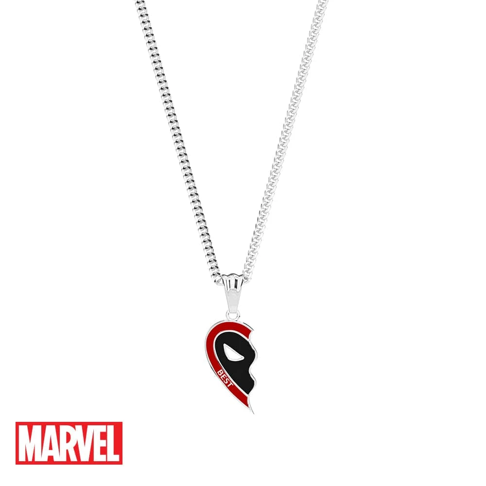 Celebrate your epic friendship with the Marvel™ Deadpool & Wolverine BFF Necklace. One side showcases Deadpool’s iconic masked face, embodying his irreverent charm and playful spirit. The other side features Wolverine’s classic mask, capturing his fierce and unyielding nature. When you and your bestie wear them together, the halves come together to form a complete heart, beautifully symbolizing the unbreakable bond you share. It’s the perfect way to honor your dynamic duo with a touch of superhero flair!